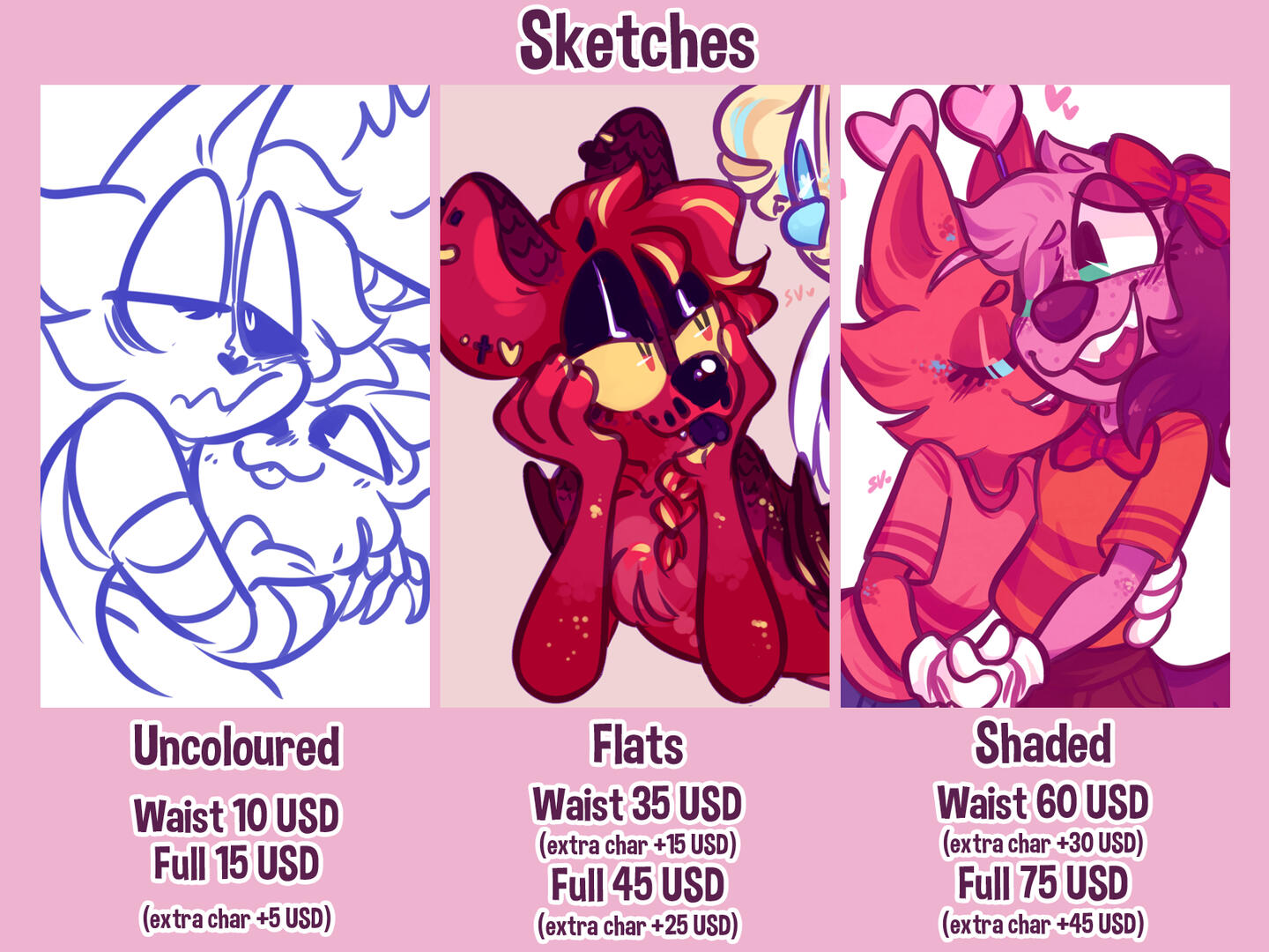 ❥ When ordering, please PM/email me (on the relevant platform), and have your ref images ready. I will confirm details (expression/pose/etc) with you.